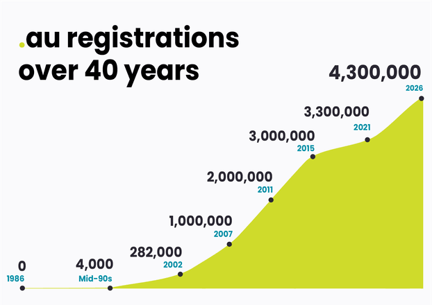 As digital technologies have transformed our lives, .au has supported Australians and Australian businesses with a trusted, recognisable online identity. In 2026, four decades since its introduction, .au is more important than ever, providing a stable foundation for innovation and emerging technologies to support Australia’s digital future.