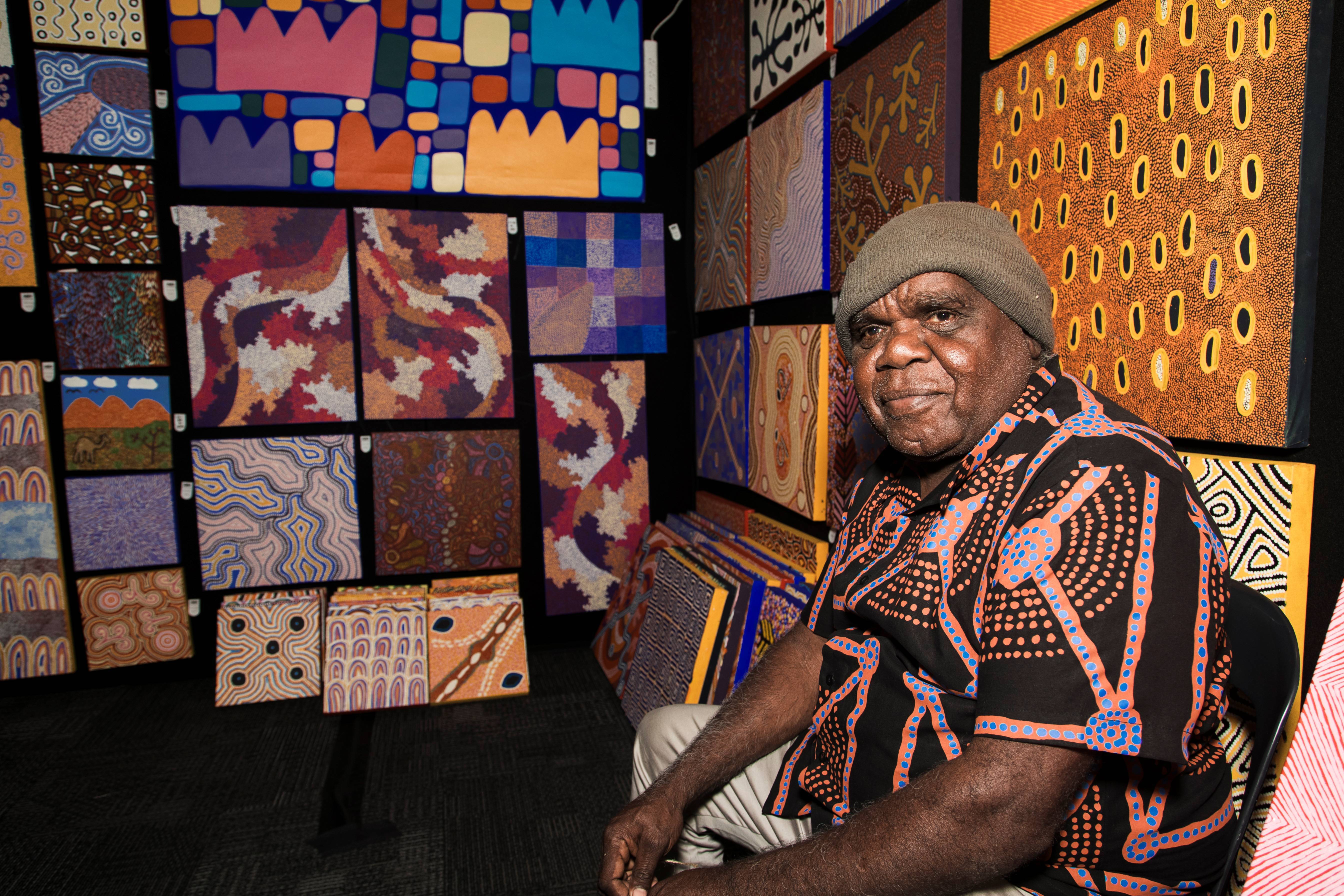 Pictured: Darwin Aboriginal Art Fair Ikuntji Artists Booth 2024, Photo by Leicolhn McKellar.